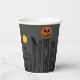 Jack o’ Laterne auf einem Zaun mit Krähen auf einer Halloween-Szene auf Papier Tassen. Spaß für ein beängstigendes Party oder Feiern.