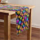 Halloween Tischläufer wird mit einem farbenfrohen Kürbisprint gezeigt. Farbe Schwarz Passen Sie dieses Objekt an oder kaufen Sie, wie es ist.