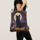 Halloween thematisch gestaltete Tarot-Karte-Illustration mit einer schwarzen Katze, Vollmond und Kürbissen.