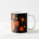 Dramatisch handgezeichnet Jack-o-Lantern Pumpkin und Blätter auf schwarz für Ihre Halloween-Feiern auf einer Tasse, die mit einer Nachricht, Namen oder Initialen personalisiert werden kann.