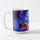 Fröhliche Halloween-Tee-, Kaffee- oder Kakao-Tasse mit beängstigenden Kürbissen im Jack O' Lantern-Stil, alter Burg und Vollmond für ein aufregendes Trick oder Treat Halloween-Party-Gefühl... Lass uns deine Welt färben!!