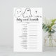 Halloween-Design , Wortkarte für Babydusche Die Wörter auf dieser Karte sind alle mit Babys verwandt und wurden verdreht. Die Gäste werden sich darum bemühen, zu sehen, wer sie alle zuerst entwirren kann! ANTWORTSCHLÜSSEL: 1. LULLABY; 2. Milch 3. MOBILE 4. Schnuller Der fünfte Punkt ist ein Windelrocksessel. 7. Kinderzimmer 8. Babymonitor; 9. Schluckauf 10. WIPES. 11. BLANKET 12. Rolle 13. SCHWIMMEN. 14. Verbindung 15. CRIB.