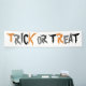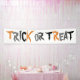 Halloweentrick-oder -Leckerei-gespenstische Text-Party-Fahne von Ricaso - entworfen in einem gespenstischen Art-Schriftart des bunten Spaßes in Grauem, in Orange und in Schwarzem auf einem weißen Hintergrund - Party in der Art mit diesem Halloween-Dekorationszusatz