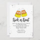 Trick oder Treat mit diesen niedlichen, lustigen und skurrilen Halloween-Süßmais. Mit einfachem QR-Code und Kartensymbol für Ihre Gäste, um die Wegbeschreibung über jede Website zu finden. Diese zauberhaften kleinen Süßmais sind glücklich und bereit, Ihren Halloween-Festlichkeiten Spaß zu machen. Weiße Orange-, Gelb- und Schwarz-Süßigkeiten mit gezeichnet Lächeln und lächelnden Gesichtern sind niedlich und können auf Ihre Wünsche zugeschnitten werden. Dieses Design umfasst Halloween-Party knebeligen niedlichen Oktober, Trick oder Leckereien Süßmais, einfache minimalistische Typografie, orange schwarz gelb, Oktober Halloween simpel, Kindererwachsenkostüm Halloween, Halloween Geburtstagsfeier Einladung, niedlich lustiges albernes Gesicht, Halloween-Party lädt, laura lacina