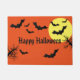 Die Halloween-Türmatte, die in der Orange mit Schläger und Mond gezeigt wird, drucken. Fertigen Sie diese Matte besonders an oder kaufen Sie, wie ist.