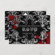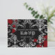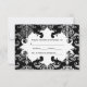 Personalisierte gotische Hochzeitskarte RSVP für Ihre Halloween- oder Vampirhochzeit. Es ist schwarz mit einem hellgrauen bis dunkelgrauen Damast-Muster und Spritzer, die Sie entfernen können, wenn Sie es wünschen. Fügen Sie Ihren eigenen Text auf der Vorderseite und auf der Rückseite.