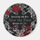 Personalisiert gotische Hochzeit Speichern Sie den Date Magneten für Ihre Halloween- oder Vampirtheaterhochzeit. Der Magnet ist schwarz mit einem hellgrau bis dunkelgrauem Damast-Muster und Spritzern im Blut, die Sie auf Wunsch entfernen können. Das macht den Kühlschrank zu einem angenehmen, kleinen dekorativen Akzent.