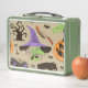 Halloween Vintages Metallfutterkasten mit Messer, Hexe und Fledermäusen, die zu deiner Halloween Lunch Box Kollektion hinzugefügt werden.