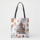Happy Halloween nahtloses Muster mit Spuk Aquarellhaus, gruseliger Kürbis aus Kürbislaterne, Orange und Schwarz und Leckereien auf weißem Hintergrund. Spooky Feiertage fallen Druck. Halloween spukt in Aquarellzaubersprüchen. Auf dieser nahtlosen Leinwand entstehen Spooky-Freuden. Halloween-Köstlichkeiten in Aquarellkunst. Spooky Spaß gefangen in jedem Detail. halloween, muster, Spuk, Haus, nahtlos, Aquarell, Hexe, Kürbis, Hintergrund, gruselig, Dekoration, Vintag, Baum, Illustration, Party, Cartoon, weiß, Herbst, Schwarz, Orange