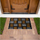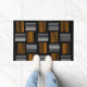 Dieses Türmchen hat ein modernes Design, das wie ein Gewebe mit orangefarbenen und weißen Linien auf einem schwarzen Feld aussieht.