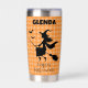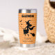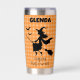 Halloween Witch & Bats Orange Plaid Custom Name Thermobecher