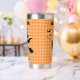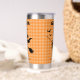 This festive two-sided design features a stylish witch silhouette flying on her broom, surrounded by fluttering bats against a cozy orange plaid background. On both sides of the tumbler, the witch soars across the scene, while proudly displaying “Happy Halloween”in black lettering. Add your custom name to make it uniquely yours or create a fun, thoughtful gift for friends, coworkers, or anyone who loves spooky season. Whether you’re sipping pumpkin spice lattes, hot apple cider, or your morning coffee, this tumbler adds a touch of witchy charm to every sip. All text is editable. Edit from the product page or to change font style or color, use the design tool.
