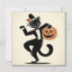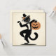 Hier ist eine hübsche Retro- oder Vintag aussehende Karte mit einer tanzenden schwarzen Katze in einem jazzigen Tux, der einen Kürbis trägt. Es ist eine lustige Karte für Halloween und eine lustige Saison für jeden, den du will, einen Gruß zu schicken, besonders für jemanden, der Katzen, Halloween oder Retro-Hexerei Lieben.
