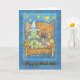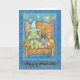 Halloween Wtich im Bett mit Katze und Eule Karte