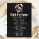 Spüren Sie Ihr Brautparty mit einer Touch gotischer Eleganz mit unserem Halloween-Blumenschädel "Würden Sie lieber spielen!"! Dieses lustige und einladende Spiel mit seinem wunderschönen Blumenschädel ist perfekt für ein Halloween- oder Gothic-Brautparty. Die Gäste werden sich ein Gefühl dafür geben, was die zukünftige Braut lieber tun würde - sei es bei lustigen Aktivitäten, Hochzeitsvorbereitungen oder bei Lebensentscheidungen. Es ist ein großartiger Eisbrecher, der sicher lacht und lebhafte Diskussionen auslöst!