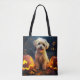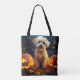 Halloween Yorkipoo mit Pumpkins Beängstigend