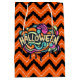 Ein Zickzack, schwarzer und orangefarbener Gemusterter Mittlerbeutel zu Halloween