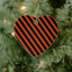 Diese Keramik Porzellanschmuck ist in einer Herzform mit Halloween-Streifen in den Farben Schwarz und Orange dargestellt. Passen Sie dieses Objekt an oder kaufen Sie, wie es ist.