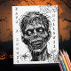 Halloween thematische Erwachsenenfärberseite mit einem gruseligen Zombie, Spinnennetze und Spinne.