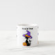 Trick oder Leckerei mit schwarzer Katze Halloweens, die den Hut einer Hexe und seinen Kürbisfreund dieses Feiertag seeason trägt.