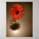 Ein orangefarbener Single in einer glasklaren Vase auf einem Tisch. Das Licht darüber bildet einen Halo um den Schatten der Blume. Trendy Café Gesellschaft noch Leben. c) J. Golden 2007