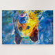 Dieser Kunstdruck zeigt ein atemberaubendes abstraktes Portrait eines Hundes, das mit lebhaften Farben und ausdrucksvollen Pinselstrichen überwältigt ist. Die Mischung aus reichhaltiger Blues, Gelb und Orangen schafft ein dynamisches und auffälliges Design, das die Schönheit des besten Freundes des des Menschen feiert. Dieses Stück ist perfekt für Hundefreunde und Liebhaber einer modernen, farbenfrohen Dekoration und verleiht jedem Raum Wärme und Persönlichkeit. Ein ideales Geschenk für Tierfreunde oder ein gewagtes Statement für Ihre Wand.