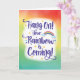 Ermuntern Sie jemanden, sich dort aufzuhalten und nicht mit dieser einzigartigen Karte aufzugeben, mit der Meldung "Hang On! Dein Regenbogen kommt!" Typografie ist mit illustrierten Regenbogen/Wolken akzentuiert und erscheint auf dem Hintergrund des Regenbogengrades. Im Inneren hat die folgende Meldung (kann aber an Ihre Bedürfnisse angepasst werden).