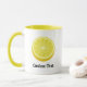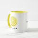 Das halbe Zitronensymbol Benutzerdefinierte Hintergrundfarbe. Benutzerdefinierter Text auf beiden Seiten.