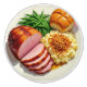 Christmas dinner with ham, scalloped potatoes, green beans and a roll kitchen cabinet knob.