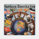 Vintages Poster der Hamburger Amerikanischen Linie mit einem Schiffsrad, Weltreisekarten, multikulturellen Porträts und nationalen Flaggen für Länder, die auf ihrer Weltreise von 1905 serviert wurden