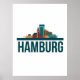 Moin! Wunderschönes Poster mit der Skyline der deutschen Stadt Hamburg mit allen berühmten Sehenswürdigkeiten wie der Elbphilharmonie, der Speicherstadt, dem Hamburger Hafen oder dem Michel. Für jede Hamburger phantastische Geschenkidee.