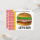 Diese Einladung hat einen Hamburger mit einem Picknickstil-Rahmen und komplett anpassbarem Text. Es ist hervorragend für Koch-outs, Grillabende, Partys, etc...