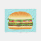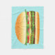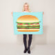 Diese Decke zeigt eine köstliche Cartoon-Abbildung eines Hamburgers. Der Burger besteht aus Fleisch, grünem Salat, roten Tomaten, Zwiebeln, Käsezwiebeln und ein paar Pickeln. Die Knospe sieht frisch gebacken aus und hat Sesamsamen darauf.