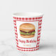 Hamburger Food on Red Gingham Happy Birthday Pappbecher
