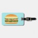 Dieses Gepäckanhänger zeigt eine köstliche Cartoon-Abbildung eines Hamburgers. Der Burger besteht aus Fleisch, grünem Salat, roten Tomaten, Zwiebeln, Käsezwiebeln und ein paar Pickeln. Die Knospe sieht frisch gebacken aus und hat Sesamsamen darauf. Auf der anderen Seite gibt es einen anpassbaren Textbereich für Name- und Adressinformationen.