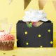 Hamburger und gelbe Punkte auf schwarzem Hintergrund
