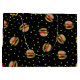 Hamburger und gelbe Punkte auf schwarzem Hintergrund