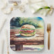 Hamburger auf einem Picknicktisch, damit man einen Hamburger auf einen Picknicktisch stellen kann. Also Meta.