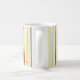 HAMbWG 11 oz Classic White Coffee Tasse mit mehrfarbigen, dünnen Streifen auf hellen Hintergrund.