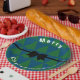 HAMbyWhiteGlove aka HAMbWG entworfen, farbenfrohe Weihnachtsbaumen mit einem Band und Bogen-Design, Papierteller. Grün und Aquamarin.