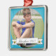 HAMbyWhiteGlove aka HAMbWG Metallschmuck aus Foto hat einen roten runden Rahmen, um Ihr Foto zu rahmen, und ein Banner (mit zwei winzigen goldenen Sternen), um Ihren Namen oder Datum hinzuzufügen. Dies wäre ein perfektes Geschenk für alle Familienmitglieder oder einfach nur an Ihrem eigenen Baum hängen, um das Jahr zu gedenken.