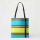 HAMbyWhiteGlove Taschen - Aqua und gelbe Streifen und mit kleineren gemischten Streifen dazwischen, und ein schwarzer Streifen mit unserem Logo in Weiß seitlich (dünner Schweizer Schriftart). Ein großartiger moderner, frischer Look. Diese Damentaschen sind in zwei Stilrichtungen und drei Größen erhältlich und sind die perfekte Tasche für Damen in Schultüten, Uni, Fitnessraum, Strand, Übernachtung und Reisen. Ob Sie eine kleine Tasche oder eine große Tasche brauchen, warum sollten Sie nicht eines dieser Taschen bekommen, die sowohl erschwinglich als auch elegant sind? - Perfekt für all die Dinge, die Sie nicht in Ihre übliche Tasche passen konnten! Unsere Taschendesigns handeln von Lifestyle, Stil, Aussage, Einstellung und "Stimmung". Welches wählst du? Wenn Ihnen dieses Design nicht gefällt, hat HAMbyWG hunderte weitere Designs und Muster kreiert, um Ihnen noch attraktivere, modische, beliebte und trendige Designer-Tottaschen zu bieten - Karo einfach unsere "Tote Bag Collection".