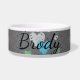 HAMbyWG - Dog Food Bowl - Graue blaue Herzen, die Sie mit Ihrem Hundenamen personalisieren und die Hintergrundfarbe ändern können!