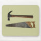 Foto eines Hammers und einer Säge auf kuschelbarem Hintergrund. Text kann nach Wunsch geändert oder hinzugefügt werden. Tagegeschenke des Großvaters, Geschenke für Bauarbeiter, Zimmerleute.