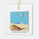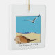 Ornament mit einem zweidimensionalen Meeresmöbelbild, das mit Wellen über den Strand fliegt. Datum Anpassbar auf der Rückseite. Die Hamptons, New York vorne im Baskerville-Schriftart