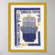 Die Hamsa, das Symbol der Segen und des Schutzes Gottes, wird in der Schattierungstechnik der Schwarzen Schmiedearbeit bearbeitet. Die begleitenden hebräischen Wörter lauten: "Gesegnet wirst du in deinem Kommen sein, und gesegnet wirst du in deinem Geheimen sein" (Deuteronomie 28:6). Die Gewinne aus dem Verkauf dieses Plakats gehen an die Fabrangen Havurah in Washington, D.C.