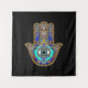 Hamsa Design Black Background Wandteppich