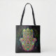Hamsa Hand Psychedelic Art, hergestellt auf Vector Graphic Techinque, mit mehreren mehrfarbigen Elementen geduldig zusammengesetzt wie ein Puzzle um die Hamsa Form zu komponieren. Symbol des Schutzes