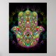 Hamsa Hand Psychedelic Art, hergestellt auf Vector Graphic Techinque, mit mehreren mehrfarbigen Elementen geduldig zusammengesetzt wie ein Puzzle um die Hamsa Form zu komponieren. Symbol des Schutzes