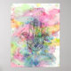 HAMSA Hand von Fatima Symbol Amulett, Tribal Dreiecke, Wirbel Kreise Punkte Augenzentrum, bunte trendige Wasserfarben. Hamsa ist das talismanische Symbol einer Hand mit einem Auge auf die Handfläche, von der angenommen wird, dass sie vor Schaden gegen die bösen Kräfte schützt und Güte, Überfluss, Fruchtbarkeit, Glück und gute Gesundheit bringt. Aquarellfarben Spritzer Hintergrund, blau, grün, rosa, lila gelb, orange, grau, weiß. . Personalisieren Sie es mit Ihrem Namen Lieblingswort oder Phrase, indem Sie auf die Schaltfläche Anpassen klicken und Text hinzufügen, wählen Sie den Schriftart und die Farbe. Bildausdruck